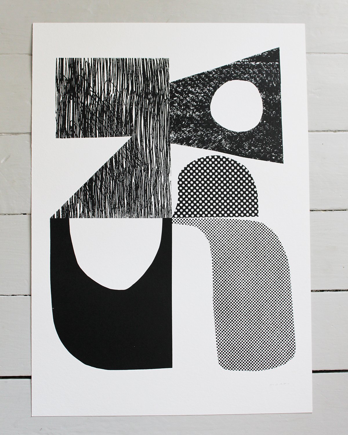 This is bold black & white screen print. It is hand printed by me with a limited edition of 50 prints, signed and numbered in pencil.
