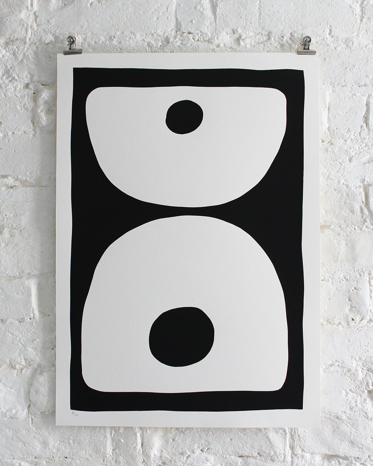 This is bold black & white screen print. It is hand printed by me using hand cut paper stencils with a limited edition of only 10 prints, signed and numbered in pencil.