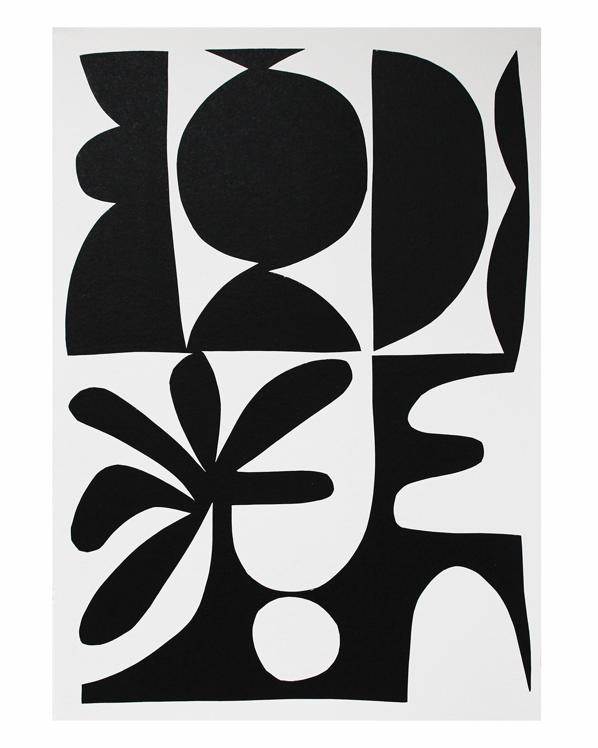 This is a bold black & white screen print. It is hand printed by me using hand cut paper stencils with a limited edition of only 10 prints, signed and numbered in pencil.